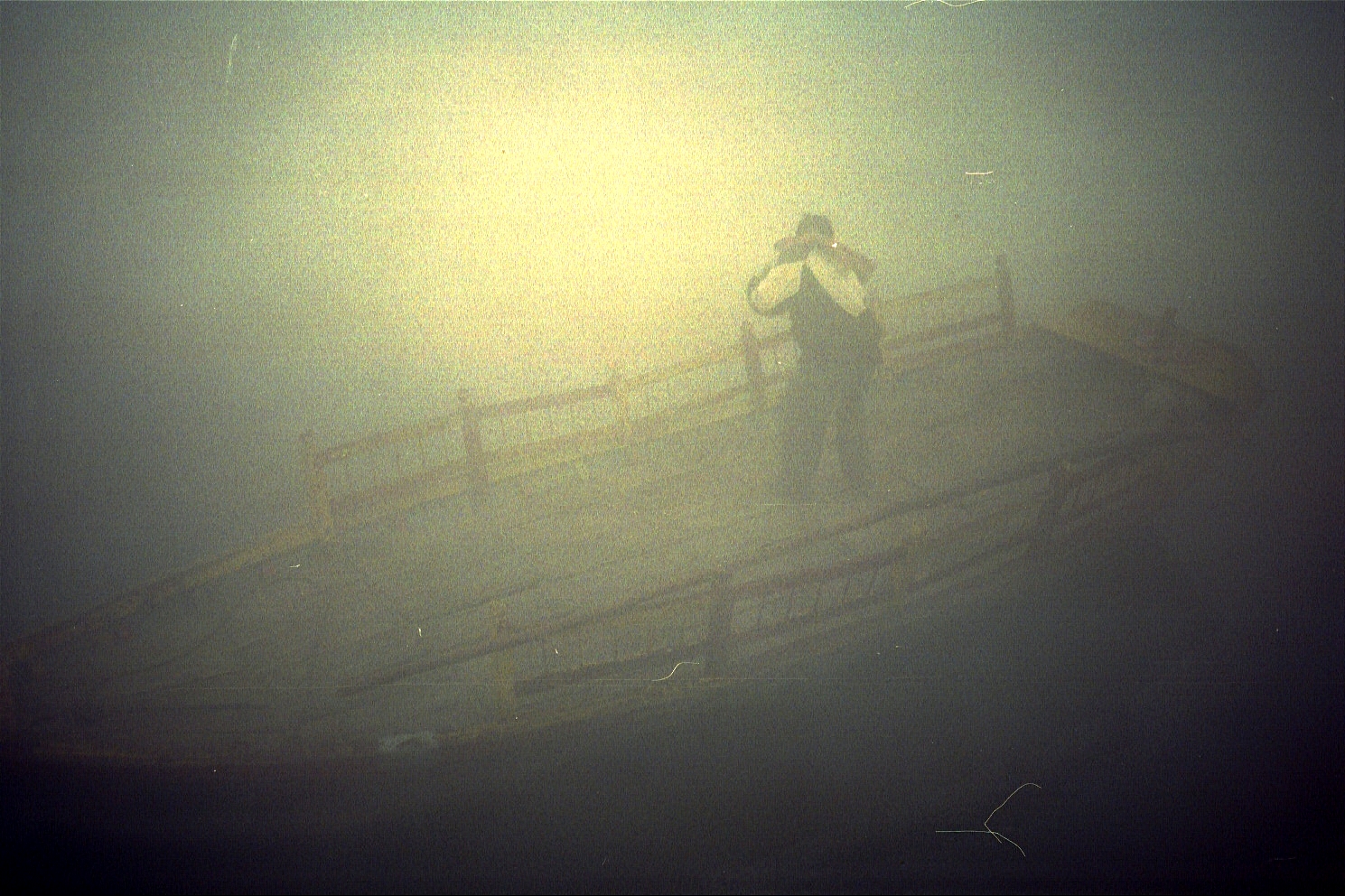 We cross the Yamuna river in the fog and catch the sun trying to burn through.