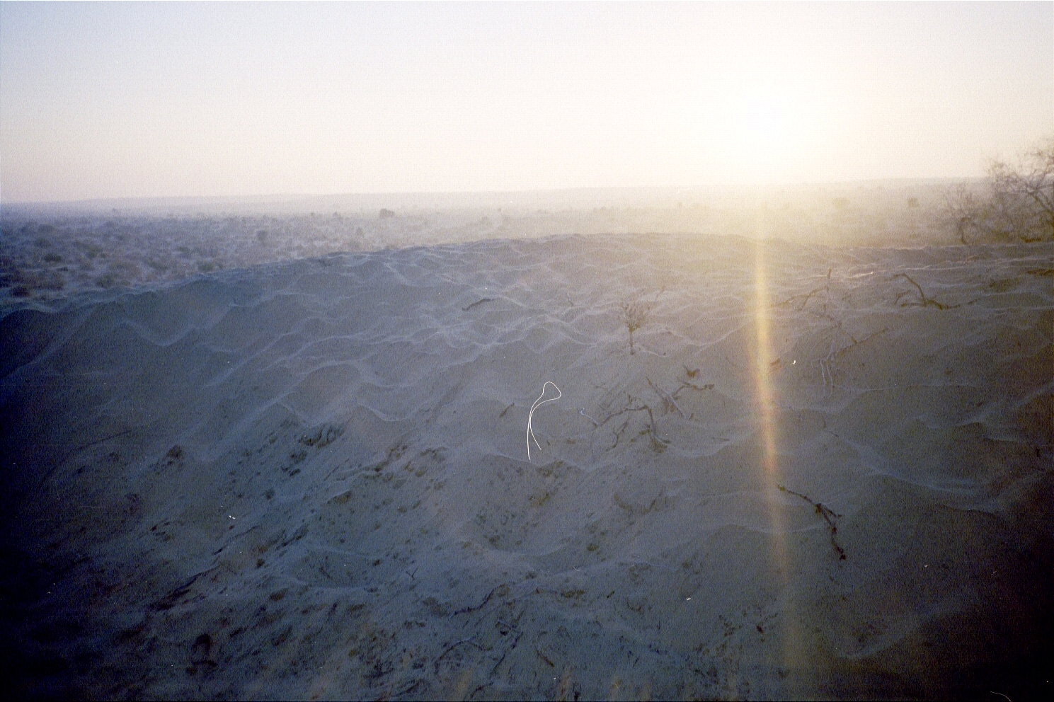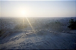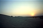 We drive back to Khuri, but find that our path is blocked by a huge set of sand dunes. We try going around but fail. Finally, we lay a track made out of brush that gets us over.