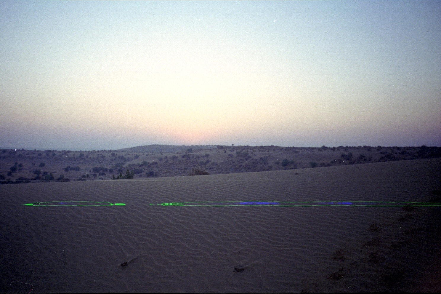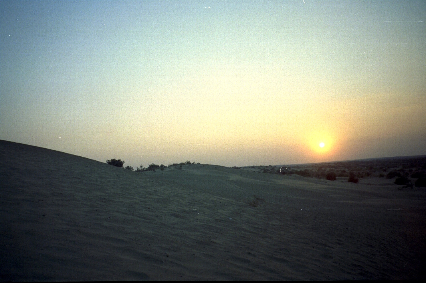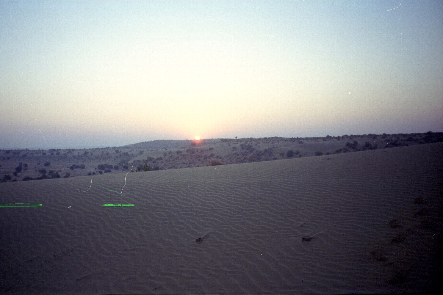 Around 9p, we take a 4-wheel drive Jeep to get lost in the desert with Manohar "Manu" Singh and Durjan Singh (Jason is christened "Goobie Singh"). We drive for about 40 kilometres/25 miles (there are no roads here) and sleep under the stars, out in the open, on a sand dune.