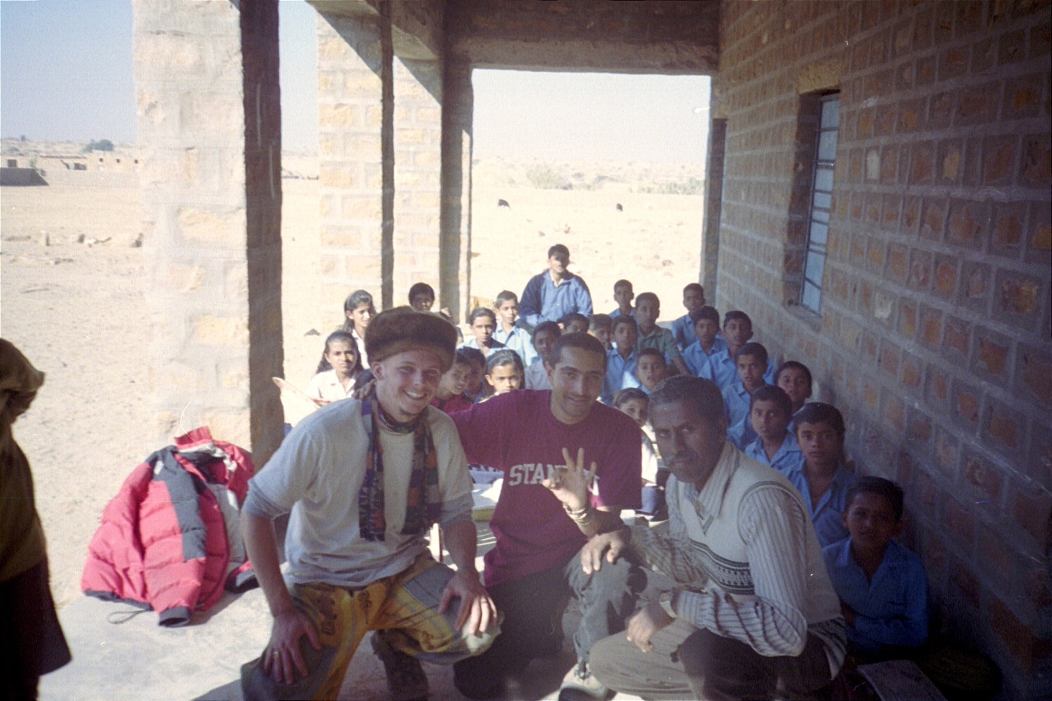We go to a nearby village where we make a lot of little friends. They follow us to our sleeping spot for the night. We share our food with them and they wolf it down. We sleep on a set of high dunes under the stars.