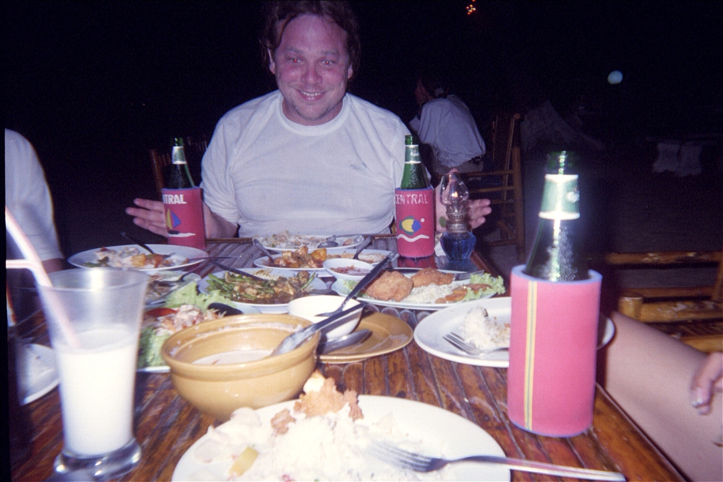 Miss the return boat by five minutes. Bagus forgets his money and has go back on a motorcycle to get it. We find a bar that serves some cool milkshakes.