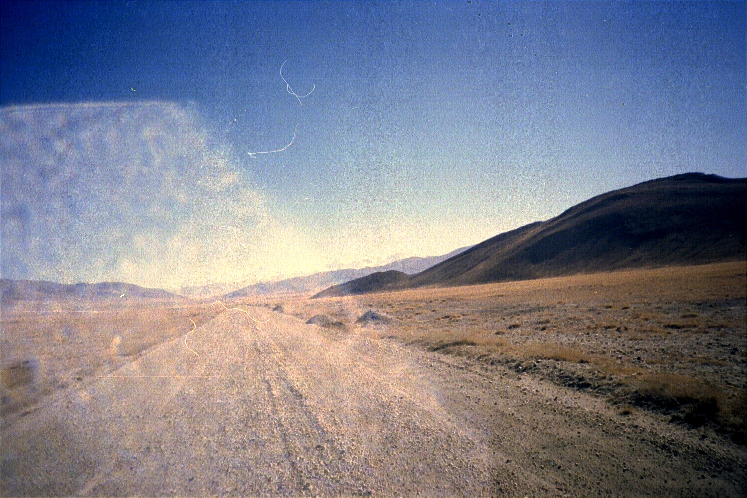 We drive as far as possible into the desert (about another 60 kilometres/38 miles). We have alternator trouble (the alternator is held together by a block of wood) which we fix at a nearby village.
