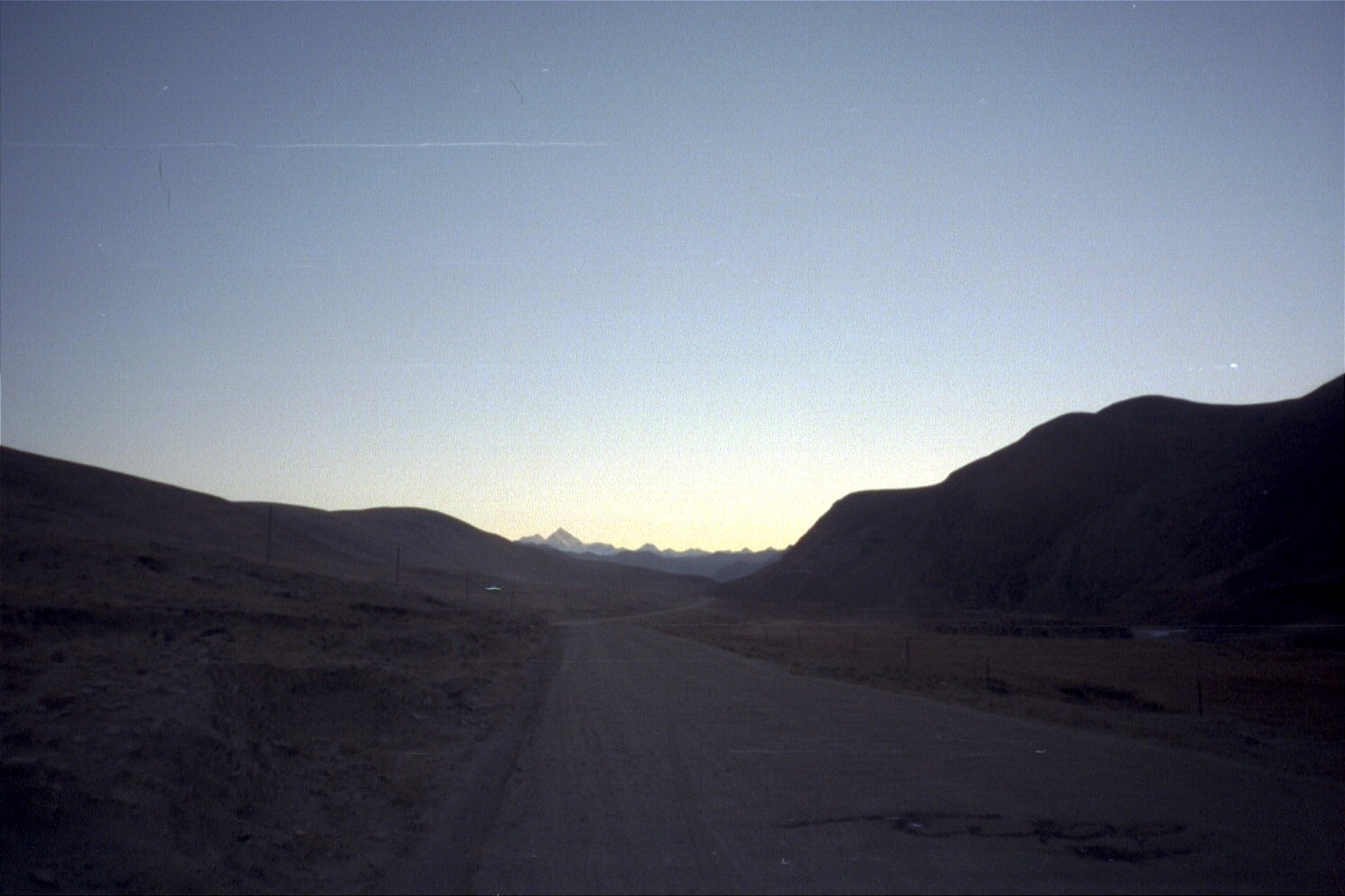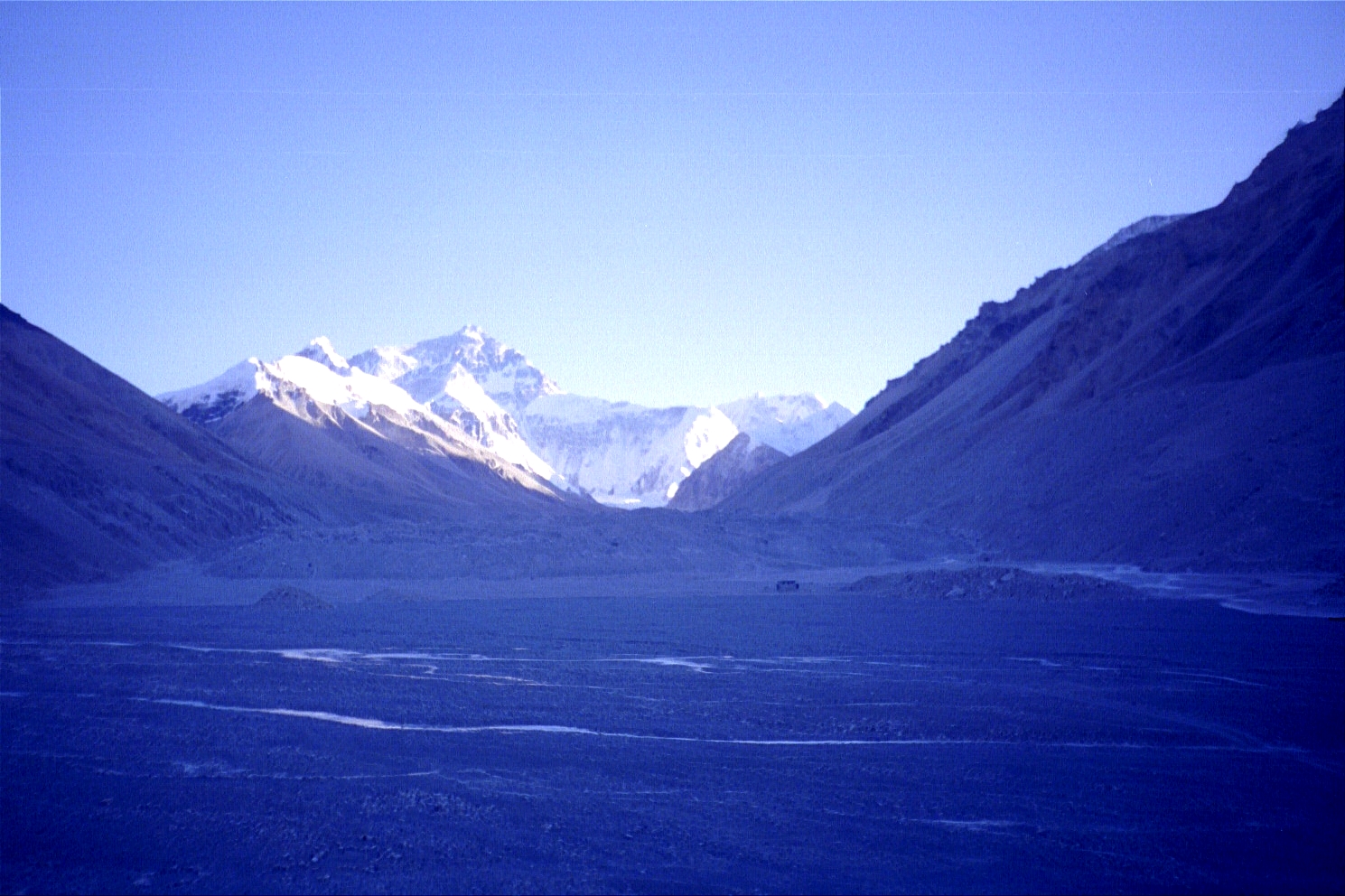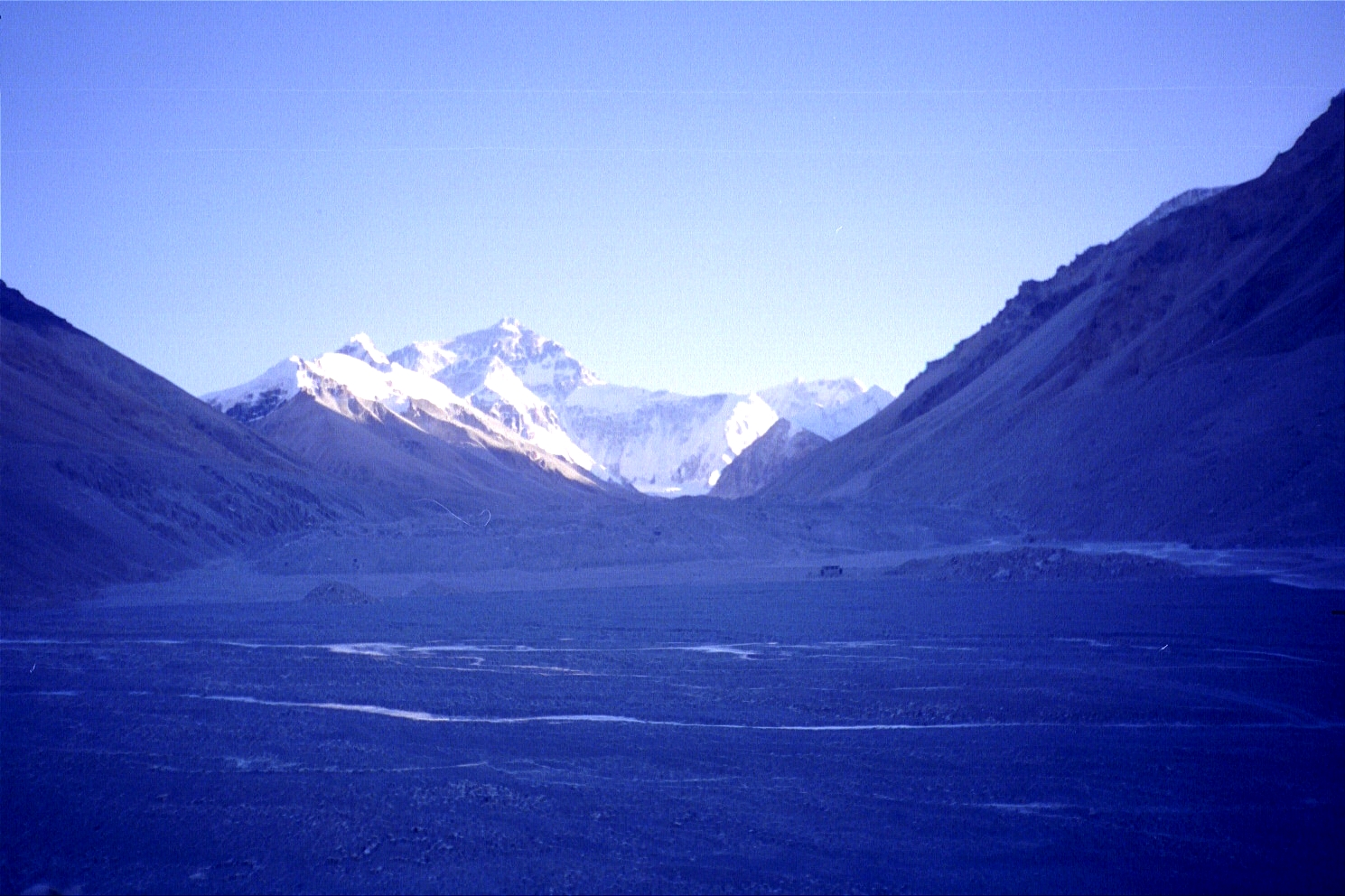 We hit a sheet of ice (on a ridge) that the car couldn't go through around 4p. We then decided to walk the next ten or so miles (starting at about an elevation of 5000 metres/16500 feet) to the base camp marker motivated by great views of Everest!